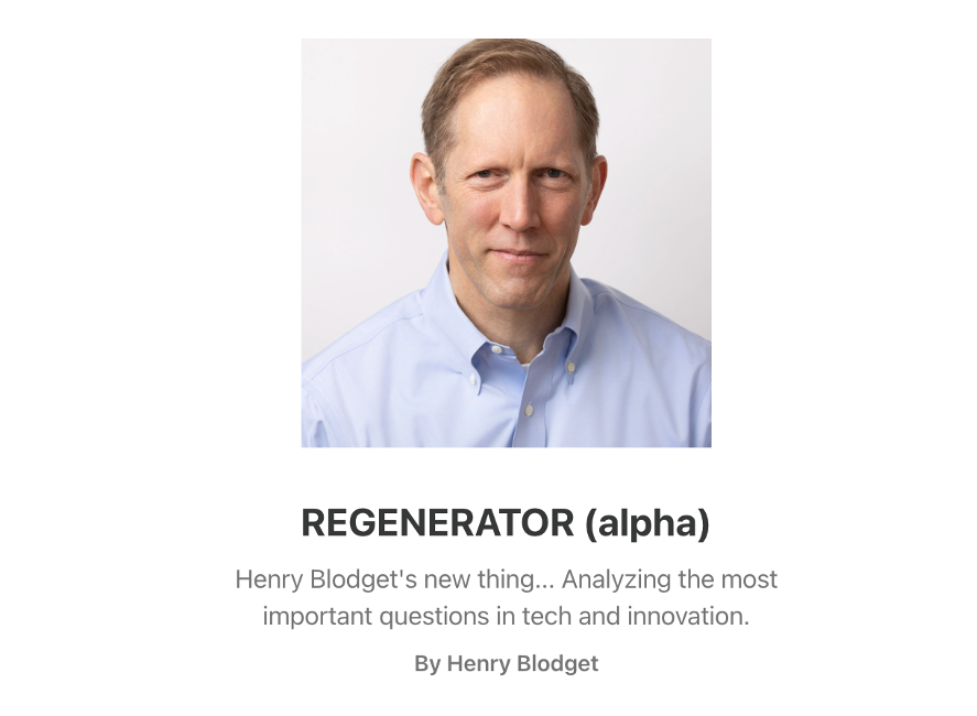 El analista, periodista y emprendedor Henry Blodget, cofundador del medio digital Business Insider en 2007, que vendió al grupo Axel Springer en 2015 por más de 400 millones de dólares y del que siguió siendo CEO hasta 2023, acaba de lanzar una nueva publicación digital en Substack llamada Regenerator.