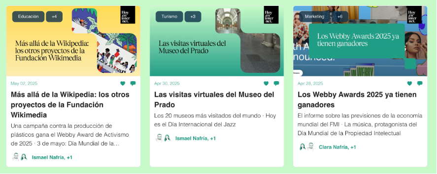 Como muchos ya sabéis, además de Tendenci@s, tengo otra newsletter, “Hoy en internet”, realizada en colaboración con Clara Nafría.