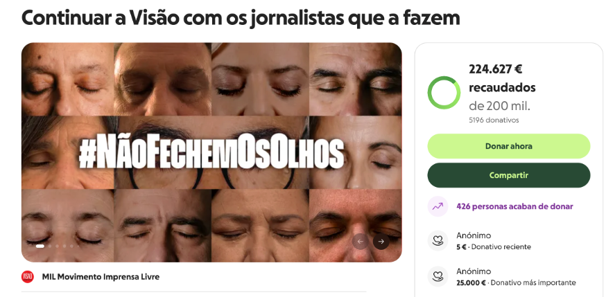 ➭ Los trabajadores de la revista portuguesa VISÃO superan su objetivo de 200.000 euros de crowdfunding para seguir con su publicación