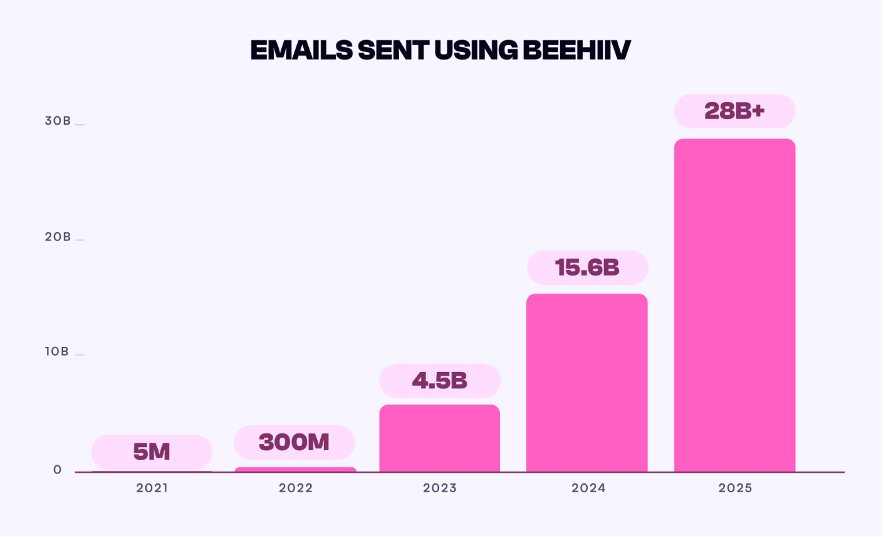 Los creadores de newsletters en Beehiiv enviaron 28.000 correos electrónicos en 2025, casi el doble que el año anterior, y llegaron a 255 millones de lectores únicos